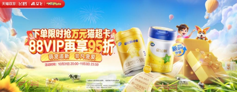 60 年來,飛鶴一直致力于創(chuàng)造更適合中國寶寶體質(zhì)的好奶粉。在推出新國標(biāo)煥新產(chǎn)品后,未來也將繼續(xù)深耕研發(fā)和產(chǎn)品創(chuàng)新,回饋消費(fèi)者的信賴。今年雙十一,除了星飛帆系列,飛鶴還將帶領(lǐng)旗下的臻愛倍護(hù)系列和茁然系列等產(chǎn)品,為消費(fèi)者們帶來品牌巨獻(xiàn)。" 萌寵追新,非凡寵愛 " 已經(jīng)開啟。隨著主人公 Yummy 一家共探成長難題的小柯基 MOCO 所承載的美好祝愿一樣,飛鶴也將在雙十一這場全民級的盛典中,以品質(zhì)出色的奶粉,給中國寶寶帶來更好的成長體驗(yàn)。