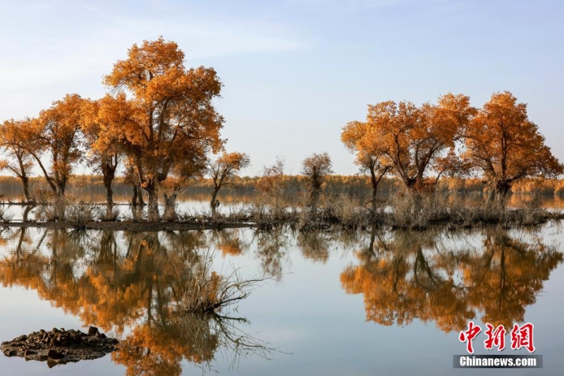 原始胡楊林倒映在塔里木河中。 柳玉柱 攝