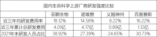 對(duì)于技術(shù)驅(qū)動(dòng)型的行業(yè),必須加大研發(fā)投入,加強(qiáng)核心技術(shù)研發(fā),構(gòu)建核心技術(shù)平臺(tái)非常重要。2019-2021年,菲鵬生物研發(fā)費(fèi)用逐年增長(zhǎng),投入費(fèi)用約4.01億元;無論是研發(fā)費(fèi)用率,還是近三年研發(fā)人員占比均處于行業(yè)領(lǐng)先地位。