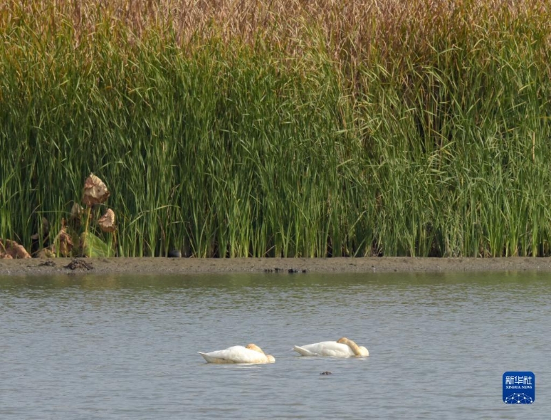 11月5日,兩只小天鵝在安徽巢湖半島國家濕地公園內(nèi)休憩。