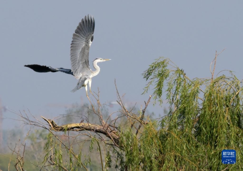 11月5日,一只蒼鷺在安徽巢湖半島國家濕地公園內(nèi)飛翔。
