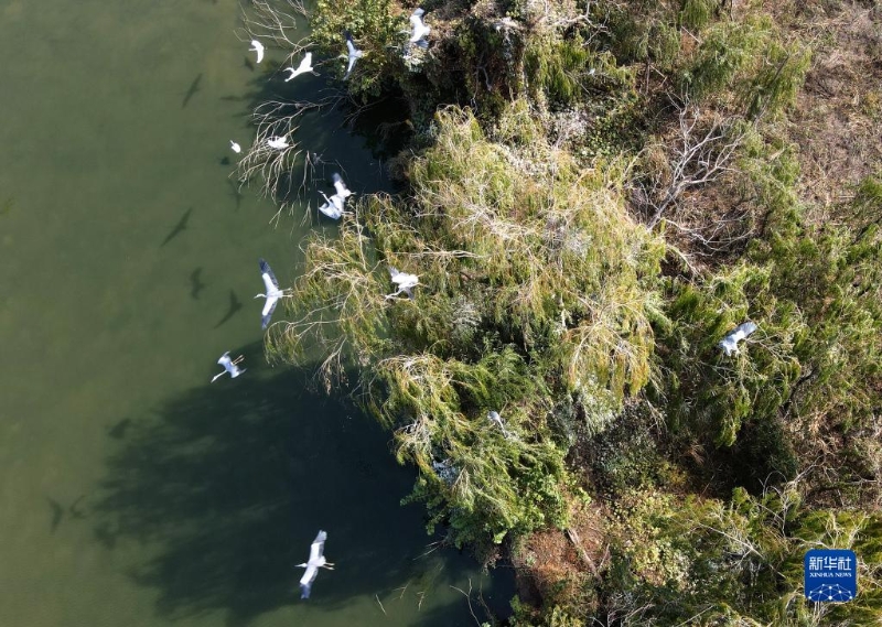 11月5日在安徽巢湖半島國家濕地公園內(nèi)拍攝的蒼鷺(無人機(jī)照片)。