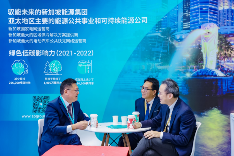 在新加坡工商聯(lián)展團(tuán)服務(wù)貿(mào)易展區(qū),新加坡能源集團(tuán)展臺(tái)全方位呈現(xiàn)了集團(tuán)在中國市場(chǎng)開發(fā)、投資、建設(shè)和運(yùn)營的諸多重點(diǎn)項(xiàng)目和落地的解決方案。