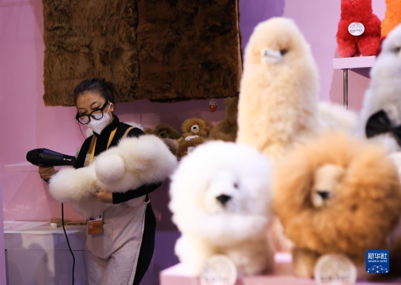 在第五屆進(jìn)博會(huì)上,來(lái)自澳大利亞、新西蘭和秘魯?shù)恼股獭安患s而同”展出羊駝毛制品,蓬松柔軟、形態(tài)各異的動(dòng)物玩偶在展臺(tái)“列隊(duì)”,吸引大批觀眾前來(lái)交流洽談,為進(jìn)博會(huì)增添一抹可愛的亮色。