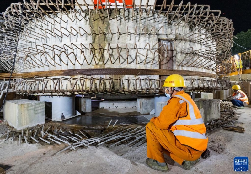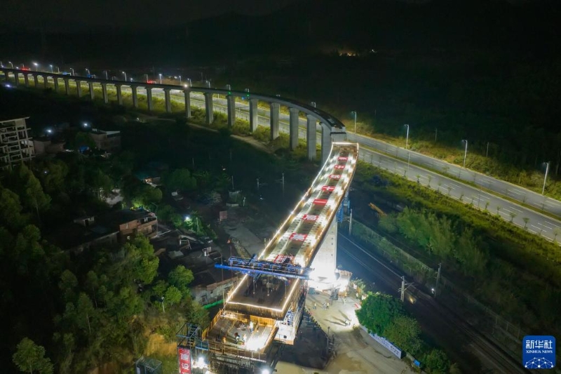11月8日,施工人員在清遠(yuǎn)磁浮旅游專線長(zhǎng)隆特大橋跨京廣鐵路連續(xù)梁轉(zhuǎn)體現(xiàn)場(chǎng)作業(yè)。