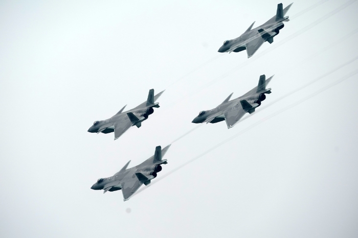 4架殲-20以四機(jī)鉆石隊(duì)形低空通場(chǎng),四機(jī)小角度拉升,向所有來賓致意。開幕式上,殲-20表演了四機(jī)通場(chǎng)、前雙機(jī)盤旋、后雙機(jī)水平交叉、大仰角轉(zhuǎn)彎脫離等精彩動(dòng)作??哲姎?20飛行員王震介紹說,“整套表演動(dòng)作充分展示了殲-20優(yōu)異的操縱品質(zhì)、良好的機(jī)動(dòng)性能,同時(shí)展示了空軍日新月異的裝備水平,實(shí)戰(zhàn)化軍事訓(xùn)練成績(jī)和捍衛(wèi)國(guó)家主權(quán)、安全、發(fā)展利益的戰(zhàn)略能力。”