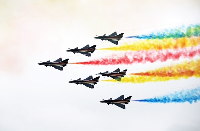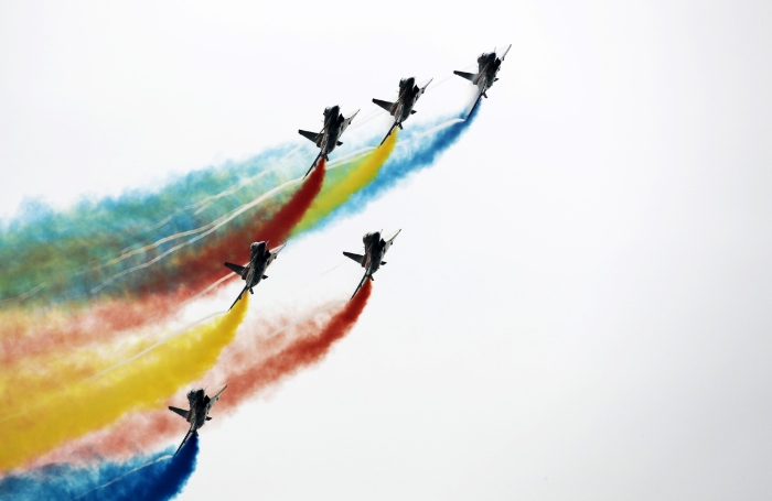 11月8日,空軍八一飛行表演隊(duì)在第十四屆中國(guó)航展上進(jìn)行飛行表演。新華社記者 張永進(jìn) 攝