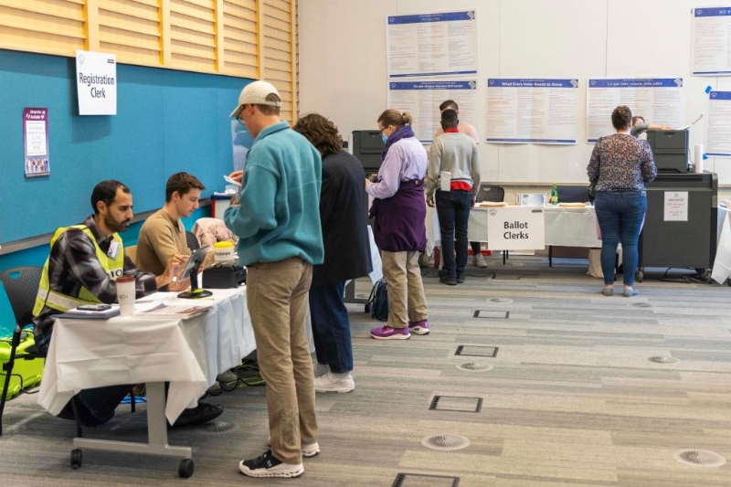 11月8日,選民在美國華盛頓的一處投票站參加中期選舉投票。新華社發(fā)(亞倫攝)