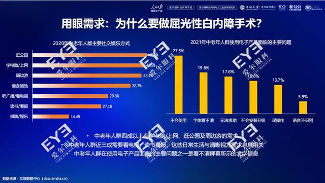 《白皮書》顯示,在中老年群體主要社交娛樂方式中,超四成有學電腦、上網(wǎng)、逛公園及周邊游的需求,近三成需要看電視、讀書看報等。而中老年群體有近兩成在使用電子產(chǎn)品時看不清屏幕信息。另據(jù)相關(guān)數(shù)據(jù)統(tǒng)計,65歲以上老人30%曾有跌倒經(jīng)歷,80歲以上老人40%至50%曾有跌倒經(jīng)歷。視力下降、視物模糊不僅影響中老年人的社交娛樂,更嚴重影響他們的身體健康!