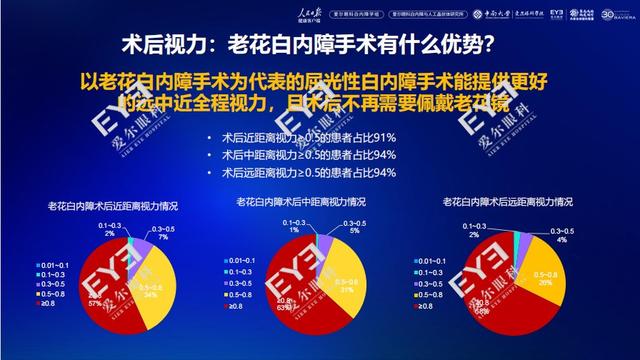 從術(shù)式選擇來看,老花白內(nèi)障手術(shù)是最受患者青睞的屈光性白內(nèi)障手術(shù)方案,中國選擇老花白內(nèi)障手術(shù)的占比超60%,歐洲選擇老花白內(nèi)障手術(shù)占比超87%。而從老花白內(nèi)障手術(shù)術(shù)后視力來看,遠、中、近視力在0.5以上的占比分別為94%、94%、91%?!袄匣ò變?nèi)障手術(shù)在解決白內(nèi)障問題的同時還能解決老花眼問題,能為患者提供更好的遠、中、近全程視力,手術(shù)后不再需要佩戴老花鏡,因此得到不少摘鏡需求強烈的中老年人的青睞?!碧骗傃嗳缡钦f。