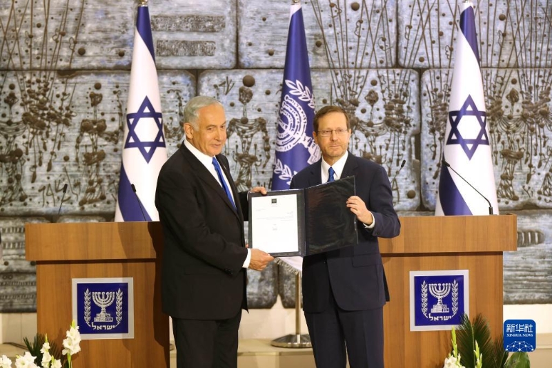 新華社耶路撒冷11月13日電(記者王卓倫 張?zhí)炖?以色列總統(tǒng)赫爾佐格13日正式授權(quán)前總理、利庫德集團領(lǐng)導(dǎo)人內(nèi)塔尼亞胡組建新政府。