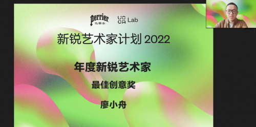 (圖為:“年度新銳藝術(shù)家”與“最佳創(chuàng)意獎”獲得者廖小舟于線上領(lǐng)獎)