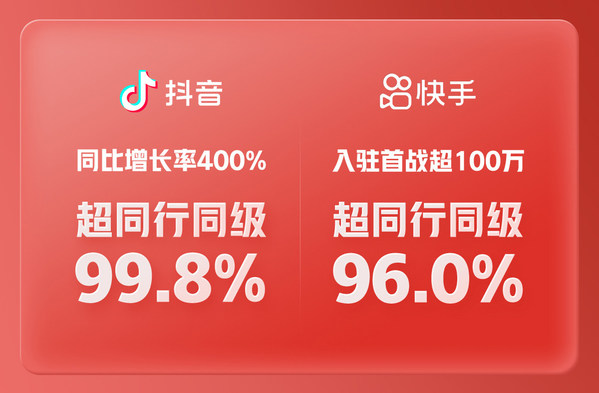 作為短視頻、直播帶貨的頭部渠道,抖音、快手成為護(hù)童今年全新布局的電商渠道。雖然是入駐的"新手",但護(hù)童仍然創(chuàng)下了佳績(jī),抖音同比增長(zhǎng)400%,超同行同級(jí)99.8%,快手入駐首戰(zhàn)超100萬(wàn),超同行同級(jí)96%。