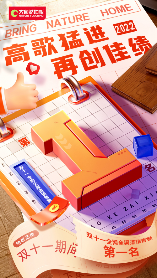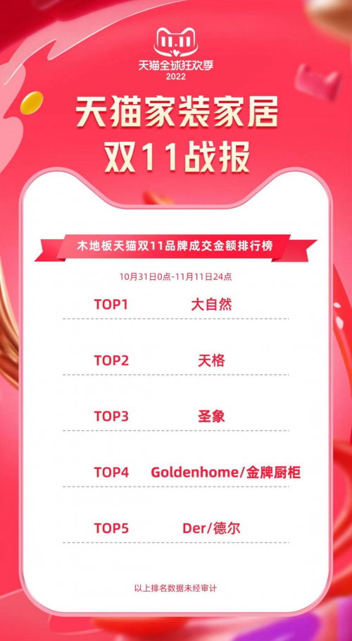 資料顯示,大自然地板自2016年參加天貓雙11活動以來,已經(jīng)連續(xù)第7年奪得地板品類銷冠。