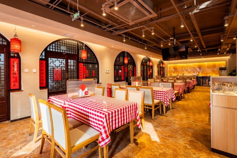 門廳里一面墻掛著西貝莜面村各一代店的牌匾,一面貼滿了這些年獲得的各類獎牌,衛(wèi)生間采用了剪紙的人偶做指示,側(cè)踩的沖水裝置便于老人使用,還在地下一層設(shè)置了可以舉辦親子活動的兒童空間……從今天的西貝莜面村六里橋店身上,我們能夠看到一代店的鄉(xiāng)土情和歷史感,也能夠看到實現(xiàn)了全明檔的現(xiàn)代化廚房和富有“家”味的小細節(jié)。