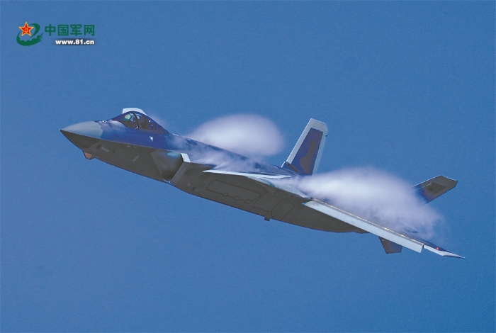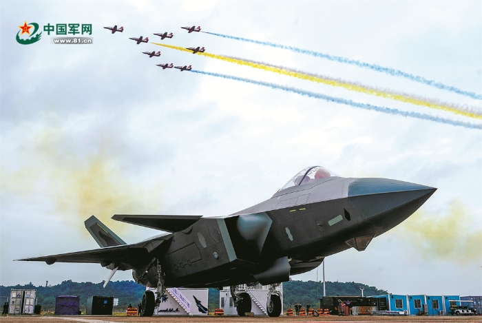 空軍殲-20飛機(jī)進(jìn)行飛行表演。