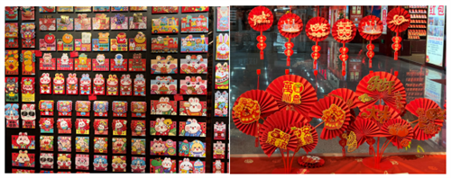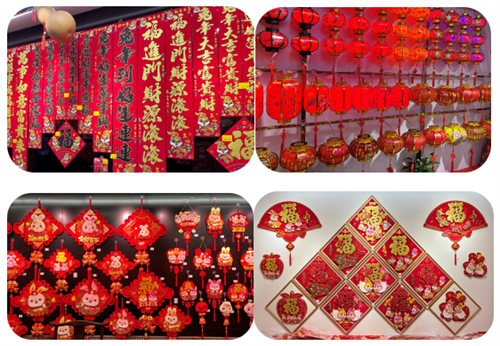 年畫、掛歷、對聯(lián)、中國結、紅包、窗花等等,滿世界的紅火令人目不暇接,滿心愉悅,絲毫不見疫情的陰霾。