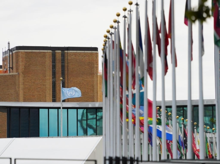 這是2020年9月14日在聯(lián)合國總部拍攝的聯(lián)合國旗和會員國國旗。新華社記者 王迎攝