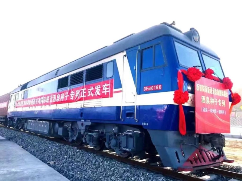 11月17日,西部陸海新通道(酒泉—?dú)J州港—鹿特丹)鐵海國(guó)際聯(lián)運(yùn)班列首發(fā)。(受訪者供圖)