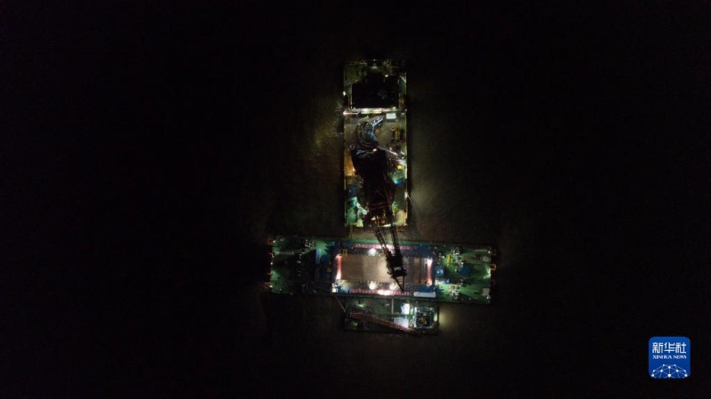 從20日夜間到21日凌晨,萬噸“大力”號(hào)與我國自主研發(fā)的古船整體打撈專用工程船“奮力”輪攜手,在長江口二號(hào)古船所在長江口橫沙水域完成各項(xiàng)調(diào)試,啟動(dòng)智慧打撈監(jiān)控系統(tǒng),對(duì)這艘清代沉船實(shí)施水下整體打撈。