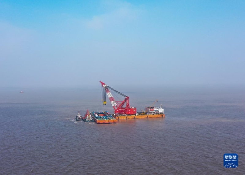 11月20日拍攝的長江口二號古船整體打撈現(xiàn)場(無人機照片)。