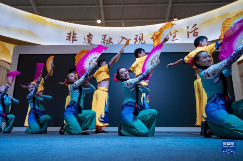 11月20日,演員在南博會(huì)旅游文化館內(nèi)表演云南花燈戲《美昭通》。