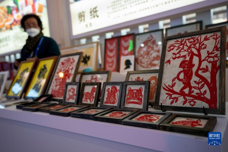 這是11月20日在南博會(huì)旅游文化館內(nèi)拍攝的非遺剪紙作品。