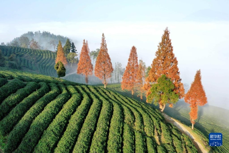 這是11月19日拍攝的湖北省襄陽(yáng)市保康縣一處茶園景色(無(wú)人機(jī)照片)。