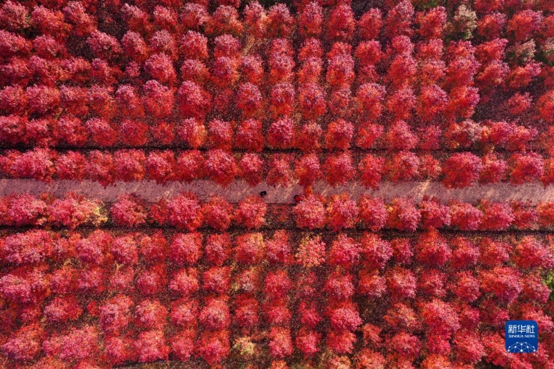 這是11月19日在四川省眉山市東坡區(qū)太和鎮(zhèn)元寶村拍攝的一處紅楓林(無(wú)人機(jī)照片)。
