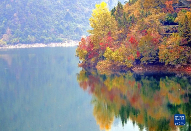 這是11月19日拍攝的湖北省宣恩縣珠山鎮(zhèn)雙龍湖畔景色。