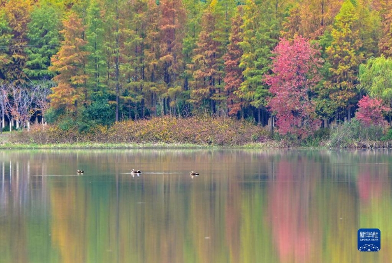 這是11月19日拍攝的江蘇昆山天福國(guó)家濕地公園景色。