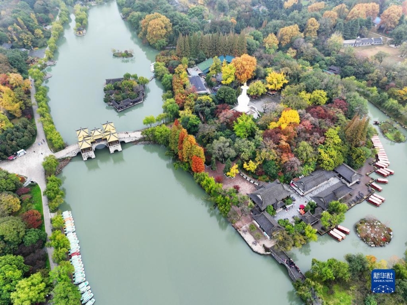 這是11月19日拍攝的江蘇揚(yáng)州瘦西湖風(fēng)景區(qū)初冬景色(無(wú)人機(jī)照片)。