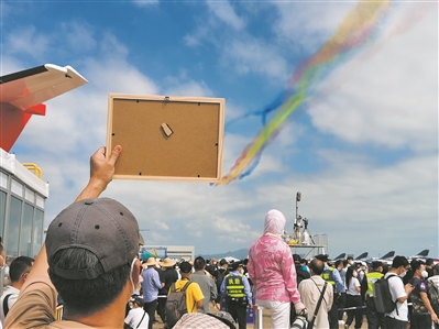“爸,您看到了吧!”在媒體和觀眾的“長槍短炮”中,馮建虎顯得格外醒目,每當戰(zhàn)機呼嘯而過,他便高高舉起相框,“今天,我終于帶著您和戰(zhàn)友,看到了強大的人民軍隊!”