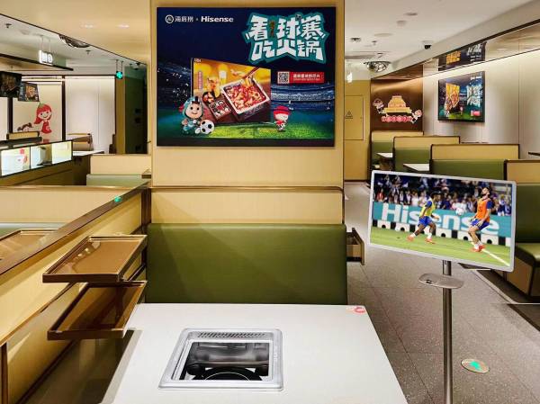 在店內(nèi),海信與海底撈將聯(lián)合打造3家世界杯主題店(海底撈北京青年路店、海底撈上海覽海國(guó)際店、海底撈深圳南山茂業(yè)店),每家主題店設(shè)置5-10個(gè)海信電視移動(dòng)觀賽席,配備海信電視移動(dòng)觀賽神器——海信健身智慧屏X7H。每晚夜宵時(shí)段(22:00-次日早7:00),球迷撈粉到店說(shuō)出暗號(hào)“看球賽,吃火鍋”,就有機(jī)會(huì)到觀賽席就餐,吃著熱氣騰騰的火鍋,C位看球,零距離感受熱辣美食與激情賽場(chǎng)。