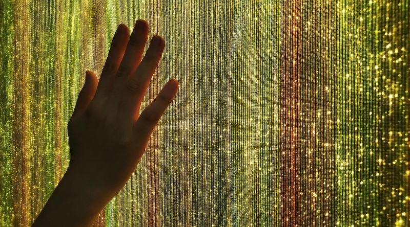 楊明潔以《數(shù)字存在主義_2022》為主題展覽,讓參展者置身數(shù)字的世界,在奇妙的空間領(lǐng)域漫游探索,在真實(shí)與虛擬之間跳躍。展覽以【光之森林】起始,碎片化、細(xì)胞狀的“虛山水”構(gòu)造觀眾每走一步所產(chǎn)生的行為都會(huì)引發(fā)互動(dòng)“炫技”感應(yīng)。從而引導(dǎo)觀眾進(jìn)入一個(gè)奇幻的虛擬世界,沉浸式地思考人與社會(huì)、人與自然之間緊密而脆弱的共生關(guān)系,感受來自數(shù)字世界的藝術(shù)思考與震撼美學(xué)。
