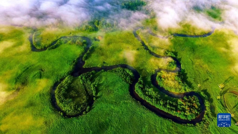 這是2022年6月20日拍攝的大興安嶺地區(qū)南甕河濕地(無人機(jī)照片)。新華社發(fā)