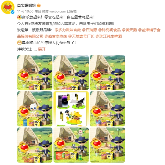 近日,臭寶品牌與零食很忙共同發(fā)起“自由自在,一起撒野”露營主題活動。在線上,臭寶螺螄粉和零食很忙官方微博與眾多品牌官方進(jìn)行聯(lián)動,并以趣味話題互動的形式吸引了廣大網(wǎng)友熱烈討論。同時,在零食很忙線下門店也舉辦了多樣的互動活動引發(fā)圍觀。此次臭寶和零食很忙也共同為行業(yè)展現(xiàn)了品牌和渠道聯(lián)動的成功案例。