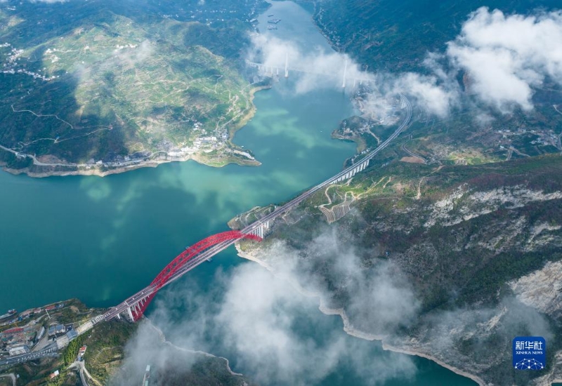 初冬時(shí)節(jié),湖北省宜昌市秭歸縣西陵峽上空云霧繚繞,船行江上,宛如一幅水墨畫(huà)卷。