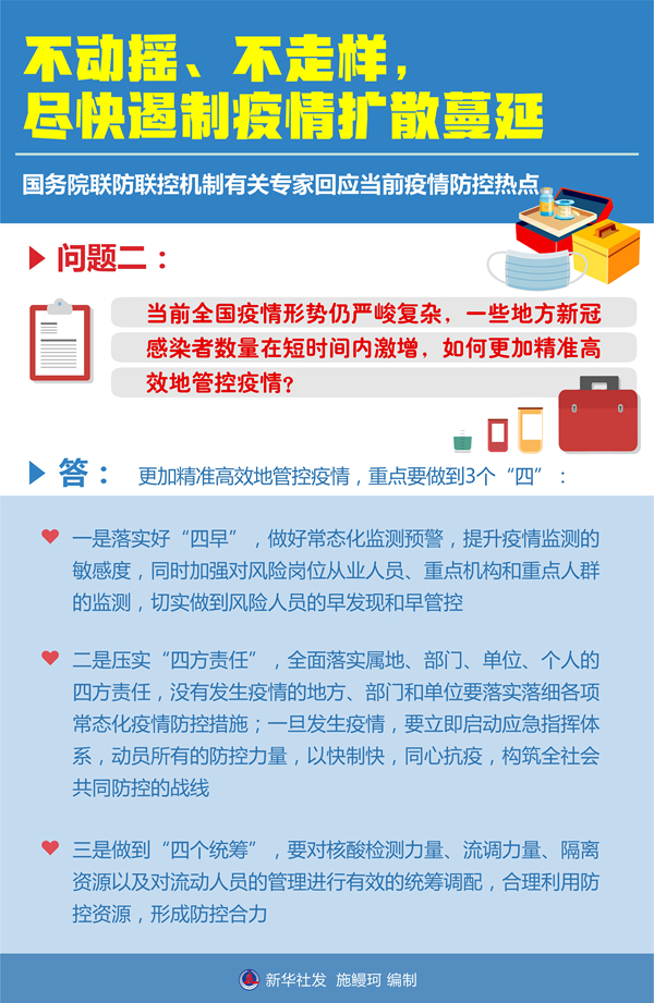 答:更加精準高效地管控疫情,重點要做到3個“四”: