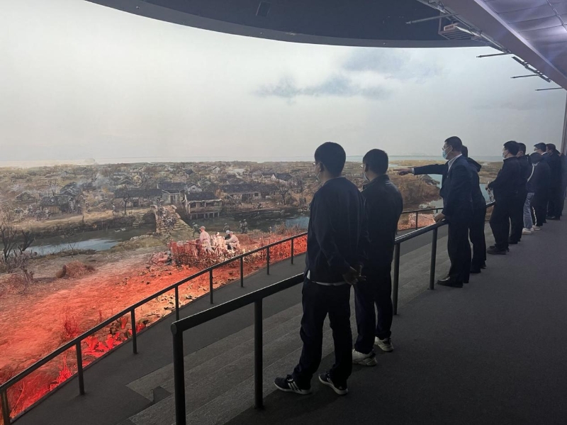 隨后,全體人員觀看了大型多媒體半景畫演示項(xiàng)目《陽澄烽火》,借助聲、光、電等多種演示手段與1000平方米的巨型油畫,500平方米的場景模型完美結(jié)合,細(xì)致還原了發(fā)生在抗日戰(zhàn)爭時(shí)期陽澄湖地區(qū)的“洋溝溇戰(zhàn)斗”。