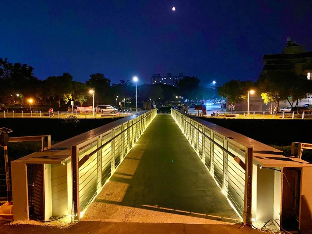夜間的鳳凰橋透過燈光,讓橋梁更加美麗。(高雄市水利局提供/林瑞益高雄傳真)