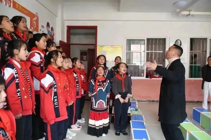 在汶水中心小學,有一個村里無人不知、無人不曉的“阿依合唱團”,這是一支在中紀委幫扶干部和北師大愛心老師共同支持下成立起來的“明星”團隊。他們現(xiàn)在可是村里的“明星”,曾在村里逢年過節(jié)、各個文藝活動里登臺表演,就連平常排練的時候,他們的指導老師吉瓦根付也經(jīng)常聽到樓下打球的孩子們,不自覺就跟著阿依合唱團的歌聲唱起來。