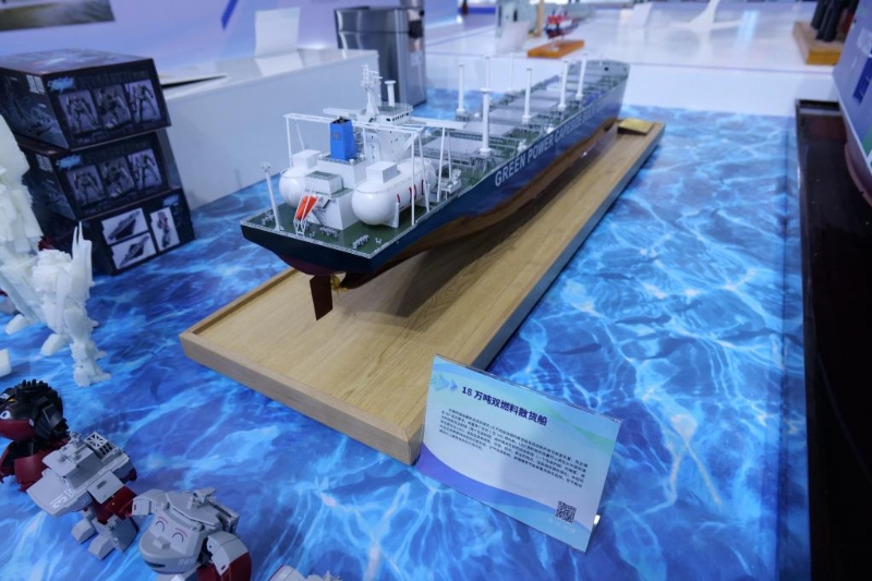 18萬噸雙燃料散貨船模型。新華社記者 王豐 攝