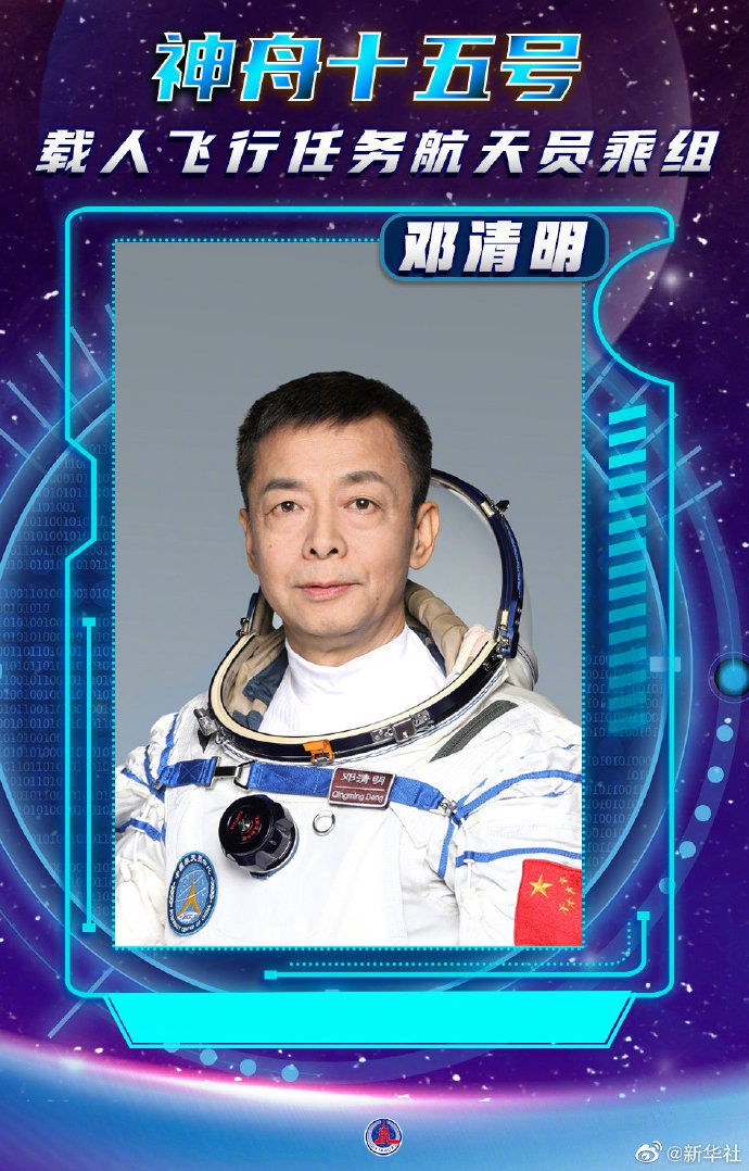 【鄧清明同志簡歷】鄧清明,男,漢族,籍貫江西宜黃,中共黨員,碩士學(xué)位。1966年3月出生,1984年6月入伍,1988年10月加入中國共產(chǎn)黨,現(xiàn)為中國人民解放軍航天員大隊(duì)特級航天員,大校軍銜。曾任空軍某師某團(tuán)某飛行大隊(duì)副大隊(duì)長,被評為空軍一級飛行員。1998年1月入選為我國首批航天員。經(jīng)全面考評,入選神舟十五號載人飛行任務(wù)乘組。(記者黃明、李國利、張汨汨)
