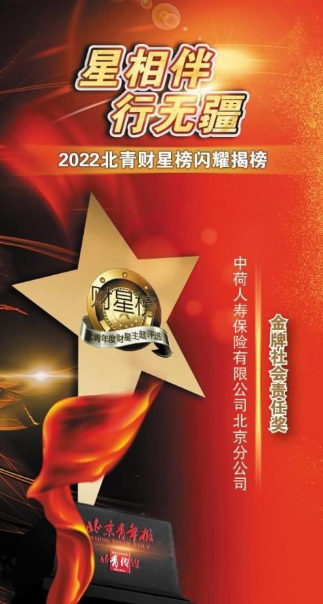 匯聚智慧與力量、樹立行業(yè)標(biāo)桿,由北京市主流媒體北京青年報(bào)主辦的“北青財(cái)星榜”不停地向社會(huì)傳遞著屬于金融的溫度。11月17日,“2022北青財(cái)星榜”閃耀揭榜,中荷人壽北京分公司榮獲金牌社會(huì)責(zé)任獎(jiǎng)。