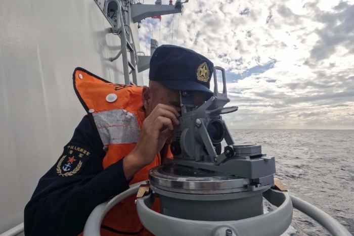 ▲ 11月25日,參加聯(lián)合巡邏的中方艦艇官兵觀察海區(qū)情況。
