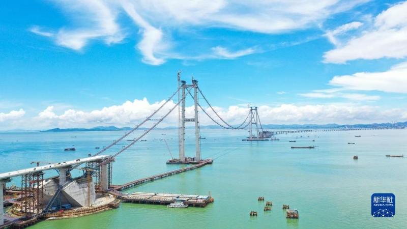 這是深中通道關(guān)鍵控制性工程伶仃洋大橋的建設(shè)現(xiàn)場(chǎng)(2022年10月16日攝,無(wú)人機(jī)照片)。新華社發(fā)(張政 攝)