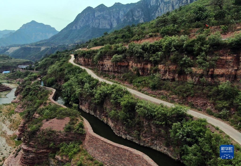 這是蜿蜒穿行于太行山間的紅旗渠總干渠(2019年7月4日攝,無(wú)人機(jī)照片)。新華社記者 李安 攝