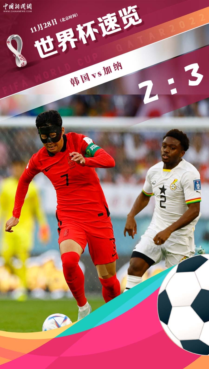 中新網(wǎng)11月28日電 北京時間28日晚,2022卡塔爾世界杯小組賽繼續(xù)進行。在H組中,韓國隊2:3惜敗加納。