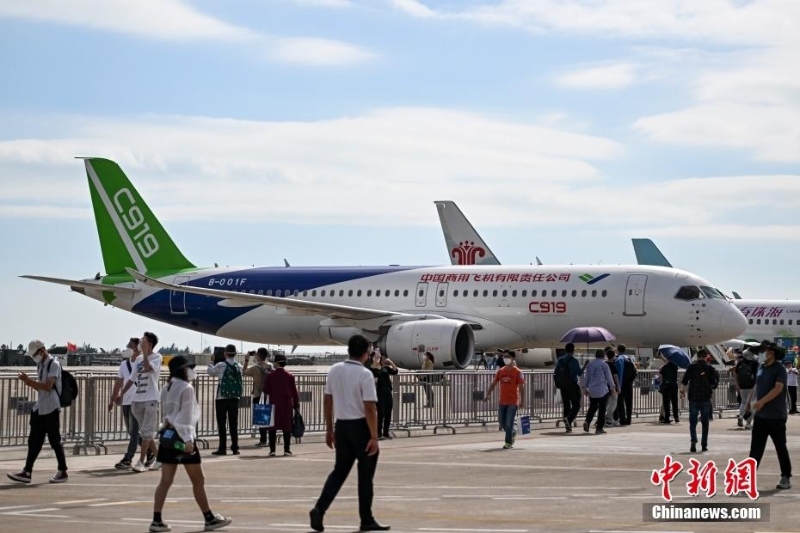 第十四屆中國(guó)國(guó)際航空航天博覽會(huì)于11月8日至13日在廣東珠海舉行,C919首次亮相中國(guó)航展。 中新社記者 陳驥旻 攝
